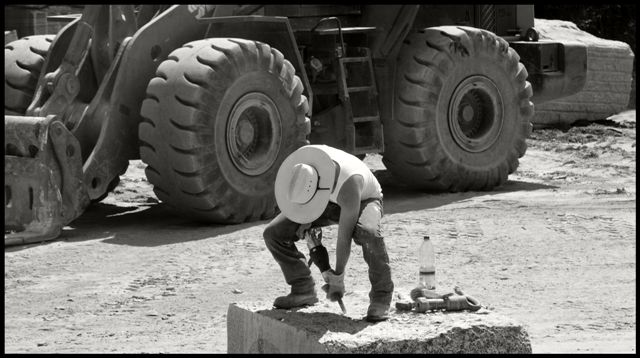 | Matthew Broussard at work in the Moro Serizzo quarry – photo Roberto Toya all rights reserved |