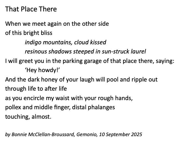 Poets are charged with throwing their works into the breach, paving the unseeable future with words that transform the painful, the splendid and the ordinary of where we are now and where we have been, into where we are going…making the leap, perhaps of faith or perhaps of desperation or even of joy. The future is there: blindingly dark, spattered with patches of dense brightness. We’re on the precipice, hanging above the clouds, now….LEAP