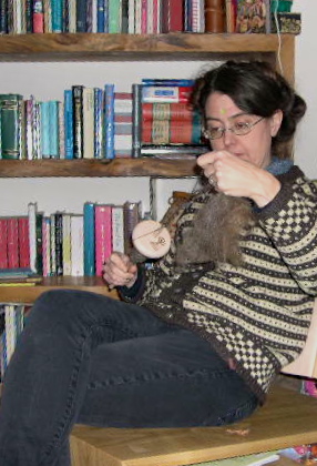 Meanwhile, my bags of ‘fluff’ and spindle were languishing in the project pile. So, yesterday I had the luxury of sitting by the fire for half a day spinning and I managed to come up with a little ball of brown yarn which, together with the ivory coloured yarn I spun at the workshop and some blue that my mother made and sent me last year, I decided to work into a cozy collar. It’s almost finished so I’ll post a picture soon. Meanwhile, my little girl is photo crazy and took 10 pictures of ‘mamma spinning’ of which I found two that are in focus! Meanwhile, if you haven’t seen what fabulous fiber art my mother does, go take a peek at her blog http://sarazmuz.blogspot.it.