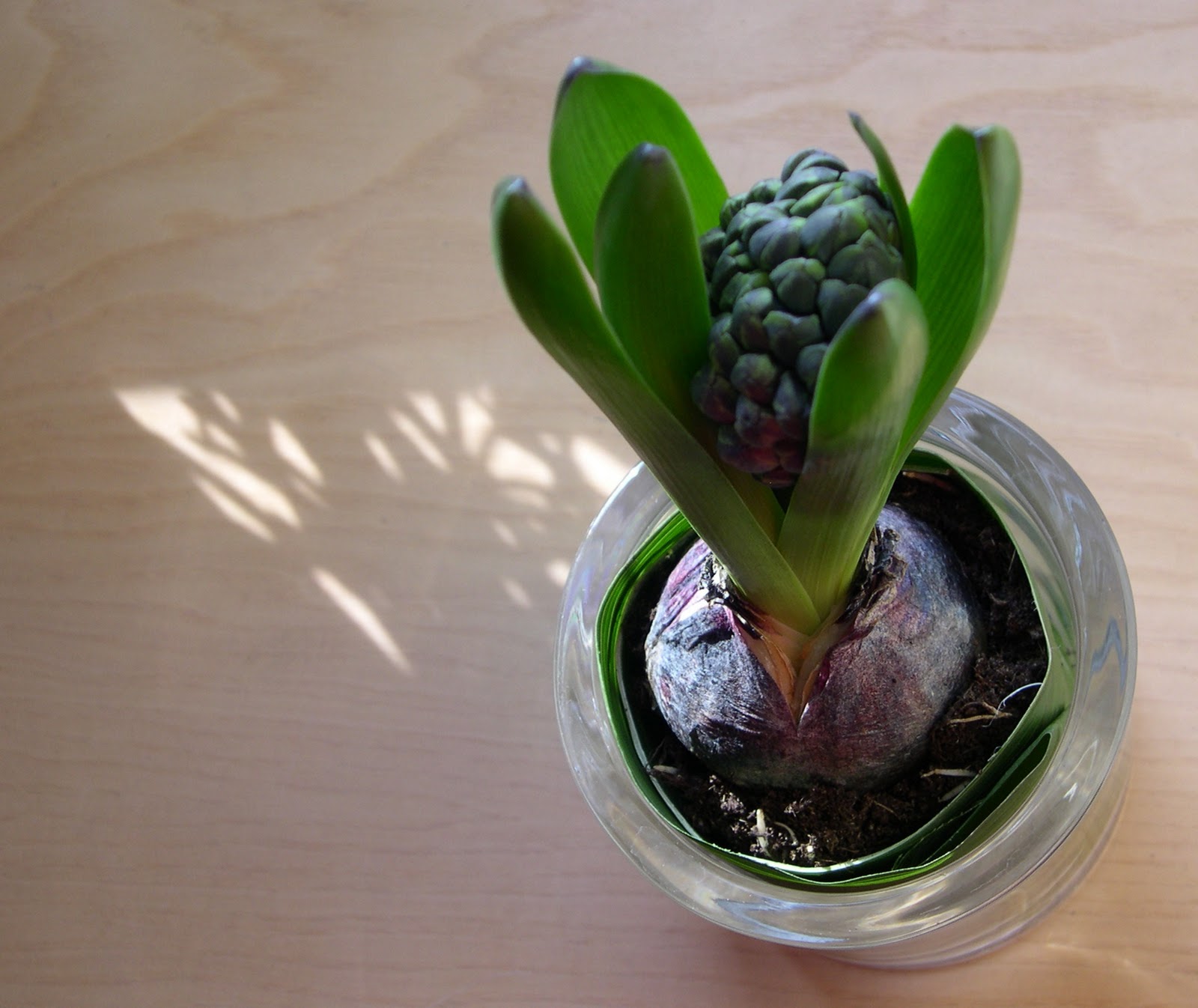 Then he let her help carry the flowers in before closing the store. He also gave me this elegant hyacinth so that now the whole house feels like spring right in the midst of winter.